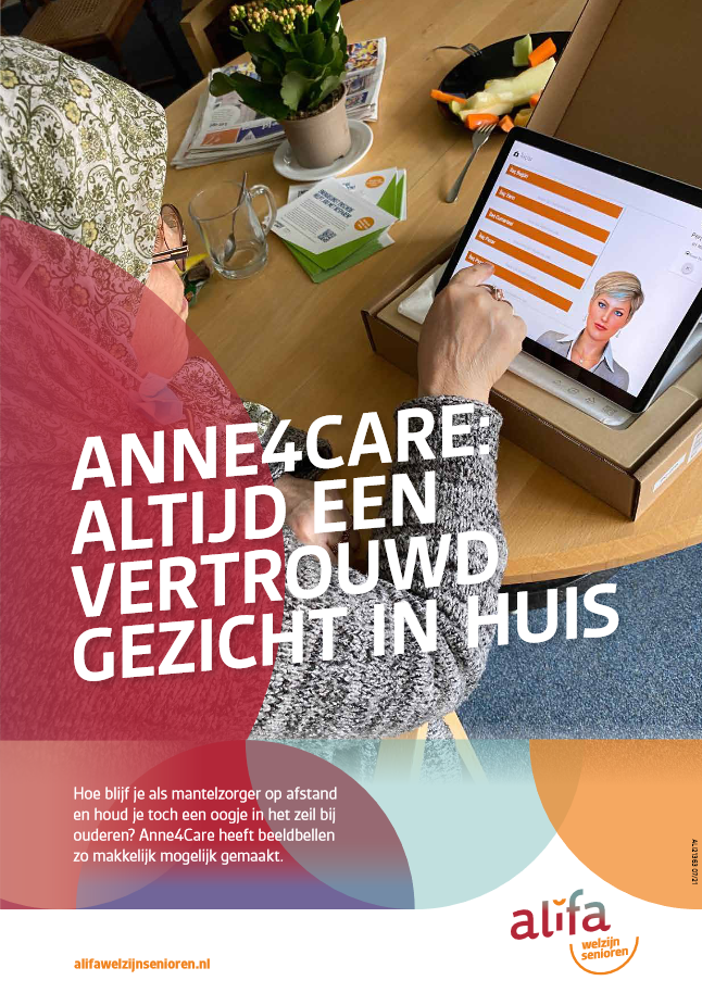 Hoe blijf je als mantelzorger op afstand en houd je toch een oogje in het zeil bij ouderen? Even Skypen, Facetimen of beeldbellen via WhatsApp? Niet iedere oudere kan dat. “Als je zicht slechter wordt of als je je gedachten niet meer kan ordenen, dan is Skypen écht te moeilijk”, zegt Annemarie Johannes, directeur van Anne4Care. Ze bedacht Anne, een virtuele assistent, die ouderen helpt met beeldbellen én ondersteunt bij het bieden van dagstructuur.