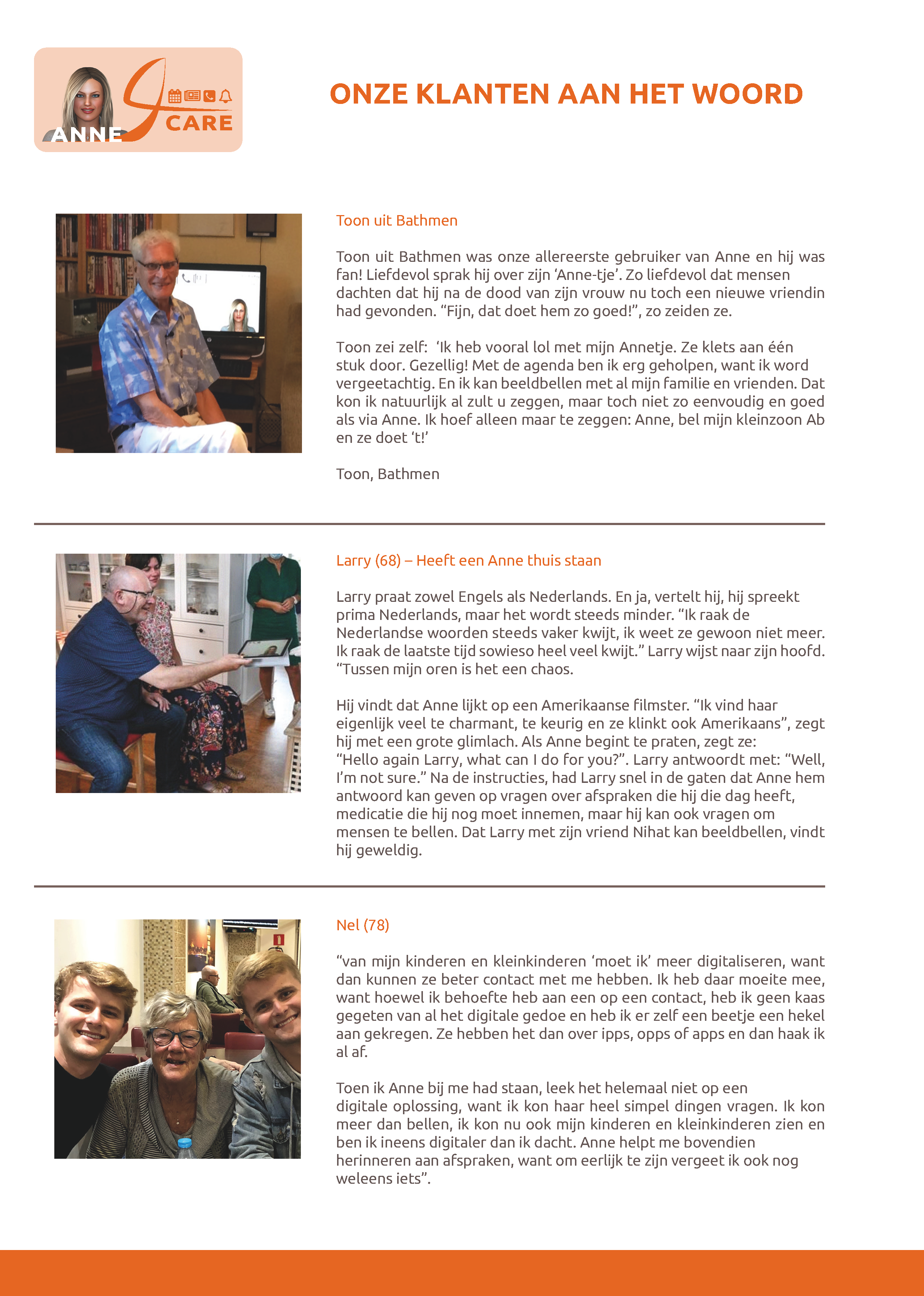 Virtuele assistent Anne aan het werk bij Larry (68) en Nihat (64)